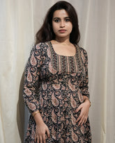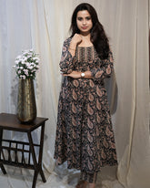 This kurta set pairs classic black with softly contrasting beige patterns, creating an effortlessly sophisticated outfit. Perfect for office wear, gatherings, or casual outings where comfort meets elegance.