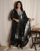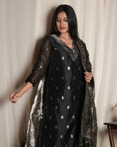 The combination of Black and off-white creates a soothing, feminine ensemble ideal for summer outings, office wear, or casual gatherings. Paired with juttis, the outfit feels both refined and comfortable.