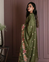 • Matching olive green dupatta featuring striking floral embroidery along the border