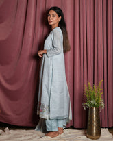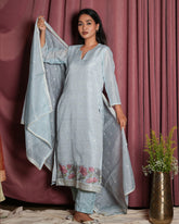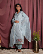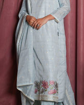 Ice Blue Chanderi Embroidered Suit Set